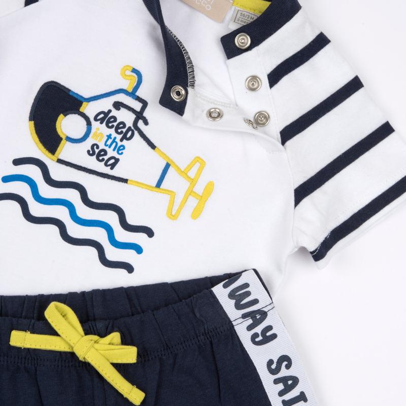 SET 2: T-SHIRT SHORT SLEEVE + SHORTS - WHITE/BLUE