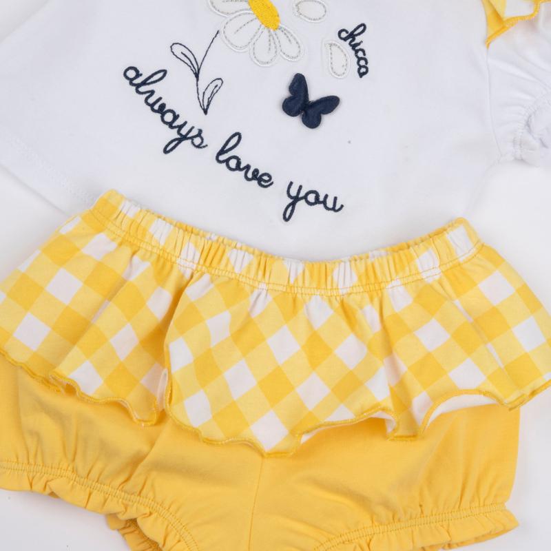 SET 2: T-SHIRT SHORT SLEEVE + SHORTS - WHITE/YELLOW