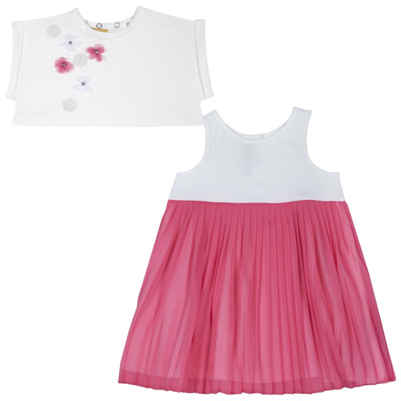 SET 2: T-SHIRT + PINAFORE DRESS - MEDIUM PINK