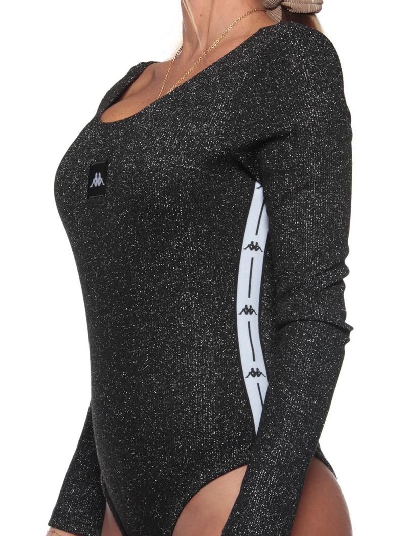 BODYSUIT LONG SLEEVE - BLACK-LUREX-WHITE
